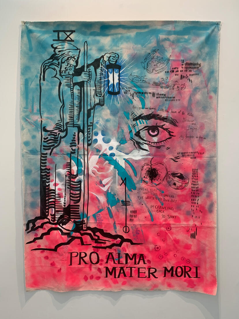 152.4 cm x 213.36 cmmy biggest work to-date, this project was a learning experience, and a frustrating one at that. I hit pen to canvas without a concept, and I quickly understood why having even some semblance of a plan is important for a piece.the title should give you all you need to know about how I felt